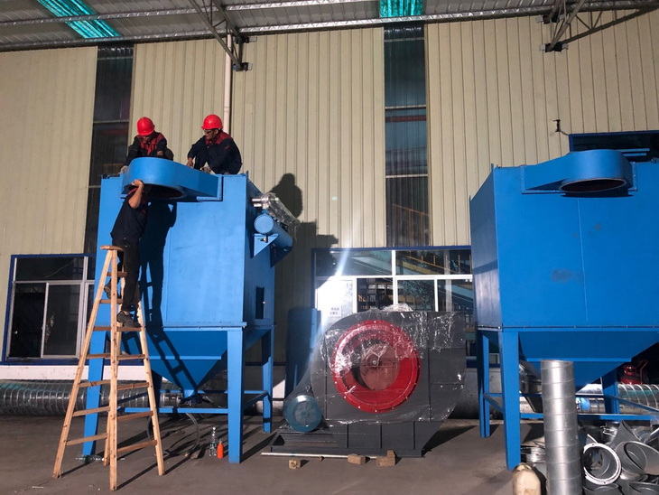 含尘气体(tǐ)进入除尘器灰斗后,由于气流断面突(tū)然扩大(dà)及气流(liú)分布板作用,气流中一部分粗大颗(kē)粒在动和惯性力作用下沉降在灰斗;粒度细、密度小的(de)尘粒进入滤尘室后,通过布朗扩(kuò)散和(hé)筛滤等组合效应,使粉尘沉积在滤料表面上,净化后的气体进入净气室由排气管经风机排出。