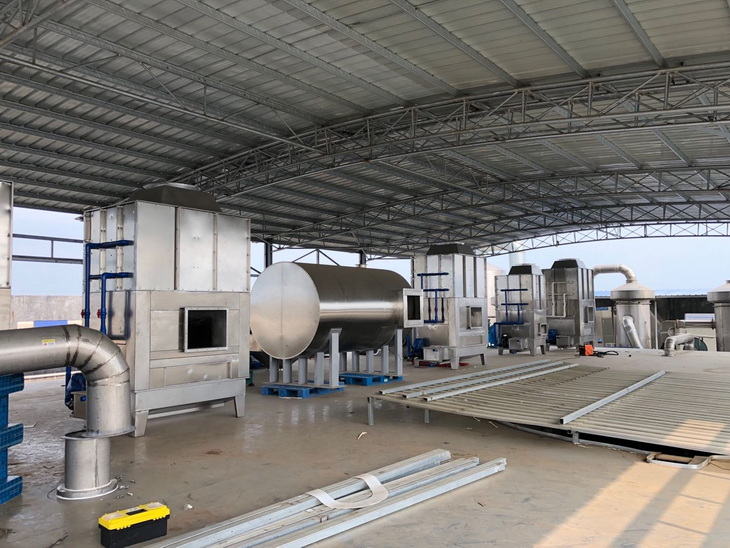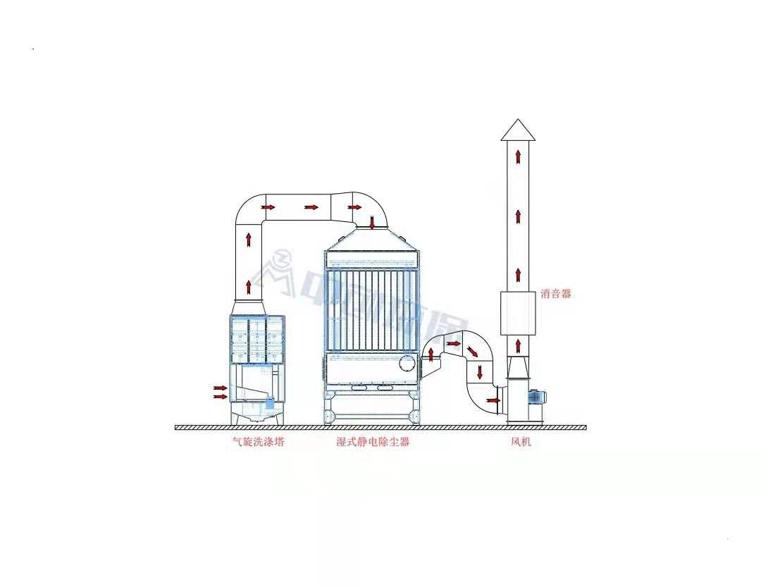 黑煙通過抽風(fēng)集塵係統收集後,經過卓效氣旋洗滌預處理(lǐ),然後進(jìn)入濕式靜電(diàn)除塵器,在高壓高頻電場的作用下將黑煙電離子為正負(fù)離子,帶電粒子流經複合式高壓電場被快速捕(bǔ)捉吸附,從而達到黑煙淨(jìng)化目的。